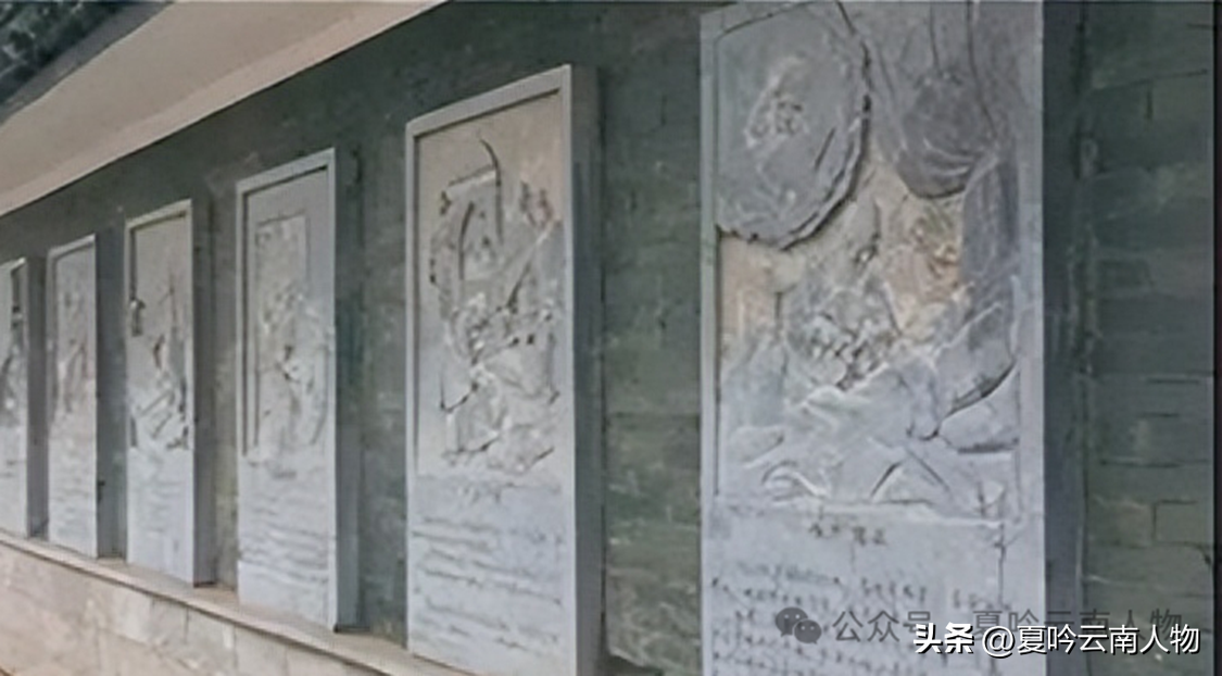 李培莲墓石牌坊后面石雕墙生动再现了龙云与李培莲的故事