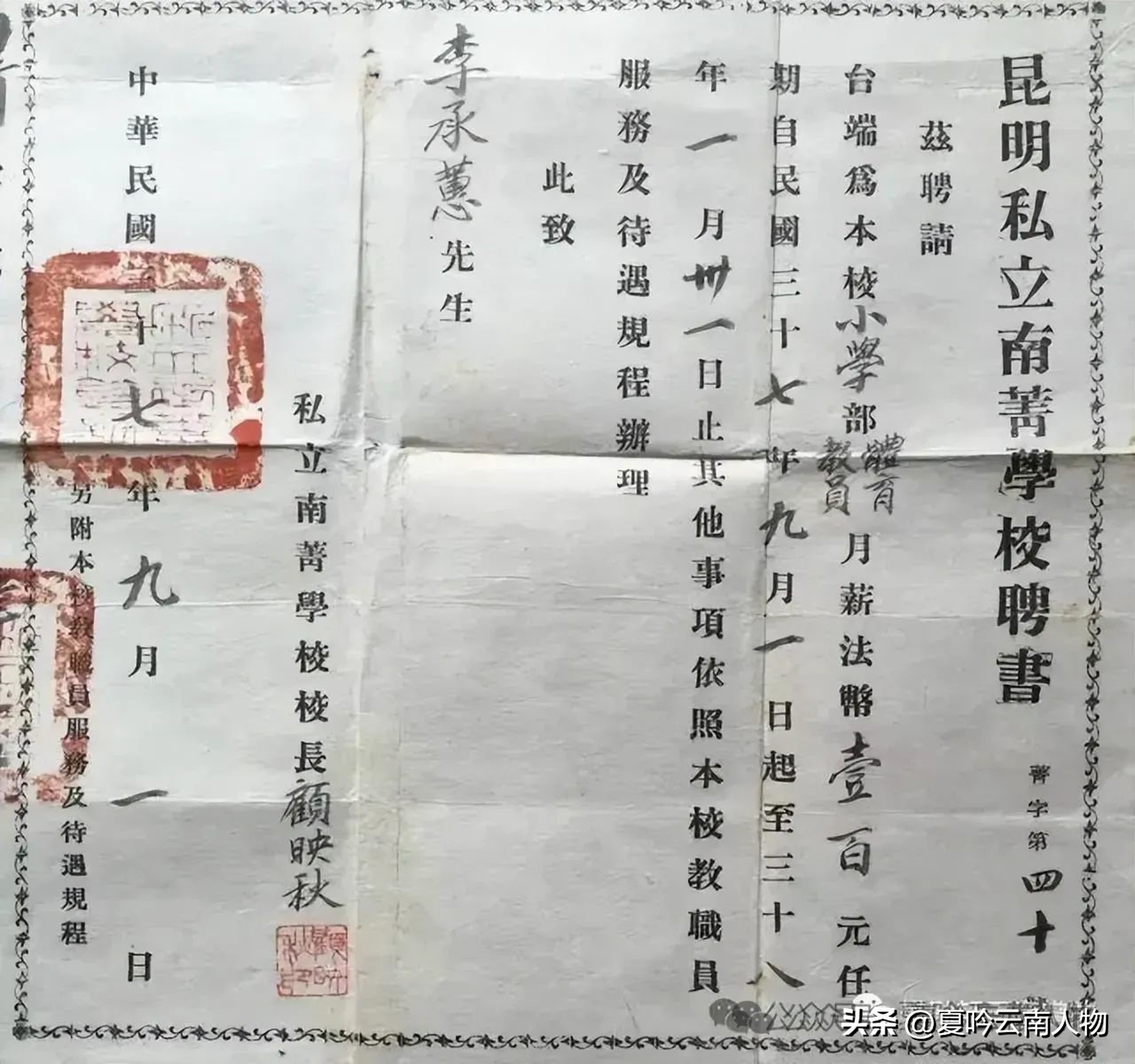 龙云为李夫人逝世发的“讣告”