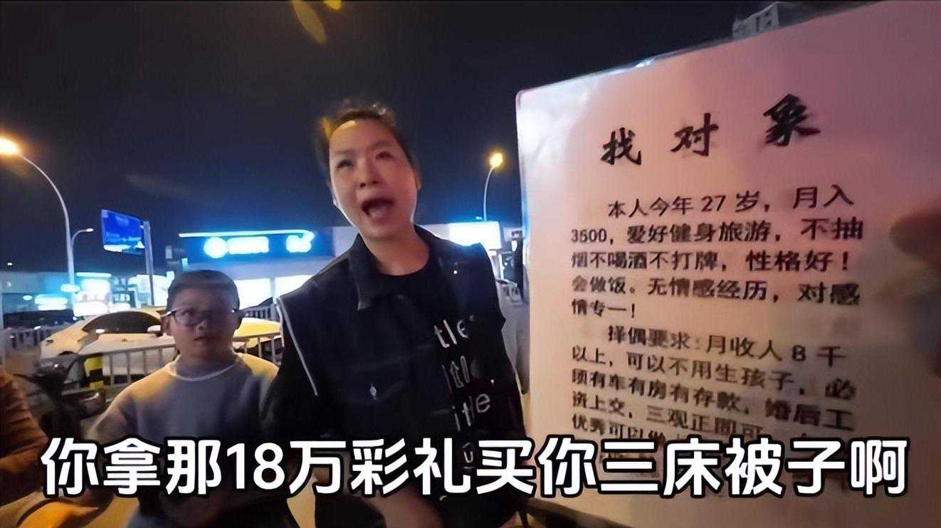 大妈们被男生的回应气得七窍生烟,她们继续围攻男生。有大妈愤怒地表示,18万彩礼给你父母,婚后工资还要由你来管,就凭你那三床被子吗?即使你给18万彩礼和拥有1万工资,也没有人愿意跟你。