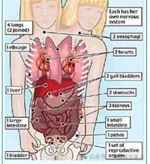 腰部以下的器官都是共用的,包括生殖器官。此外,两人还共享部分经系统。