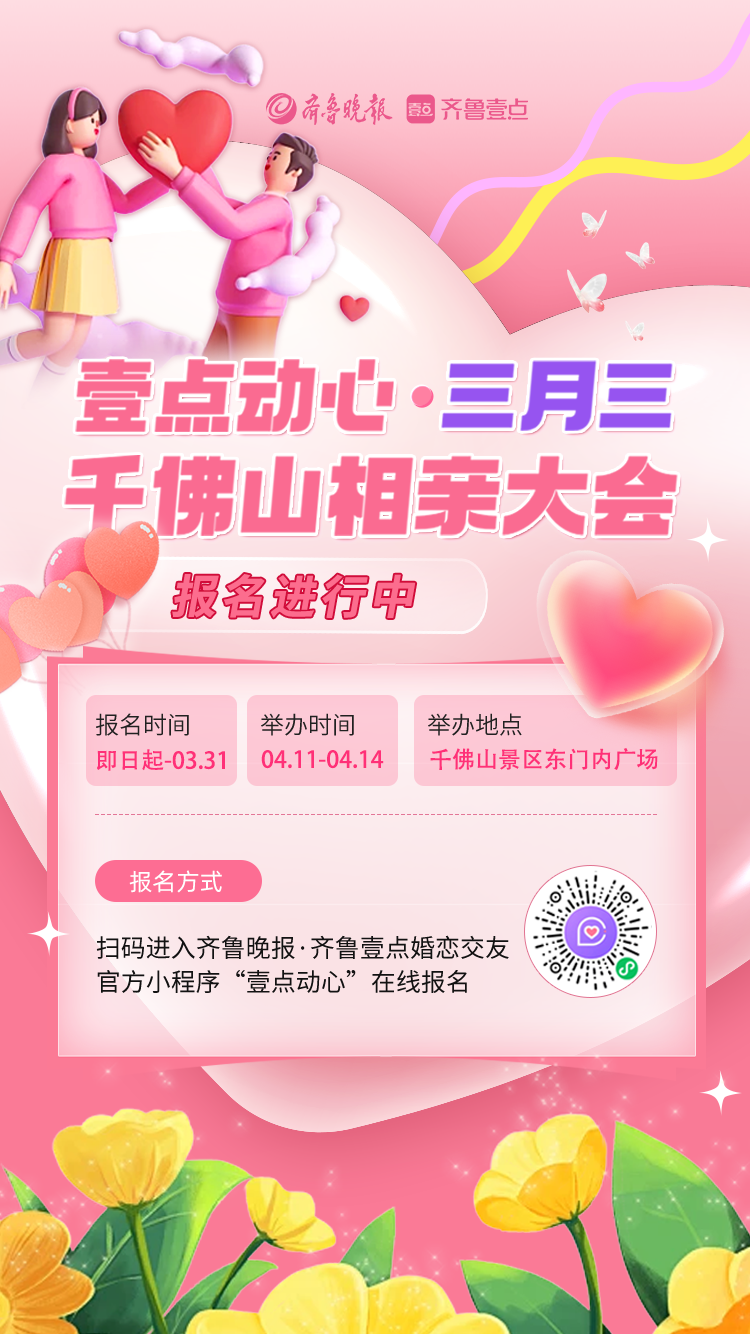 风有约,花不误,年年岁岁不相负!由齐鲁晚报·齐鲁壹点主办的第18届三月三千佛山相亲大会将于4月11日-14日在千佛山东门内广场正式举办。目前,活动报名正在火热进行中,剩余时间不多,别再观望啦!另外,本届千佛山相亲大会活动现场报名与前期报名同价,想脱单的小伙伴们别再犹豫,快来报名抓住脱单的小尾巴吧!