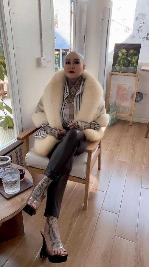 剃成光头后,冯萍又去纹了身,全身上下画满了图案。这在一般人看来简直无法接受,但冯萍对此却是非常喜欢,她觉得纹身纹出了自己的风格。