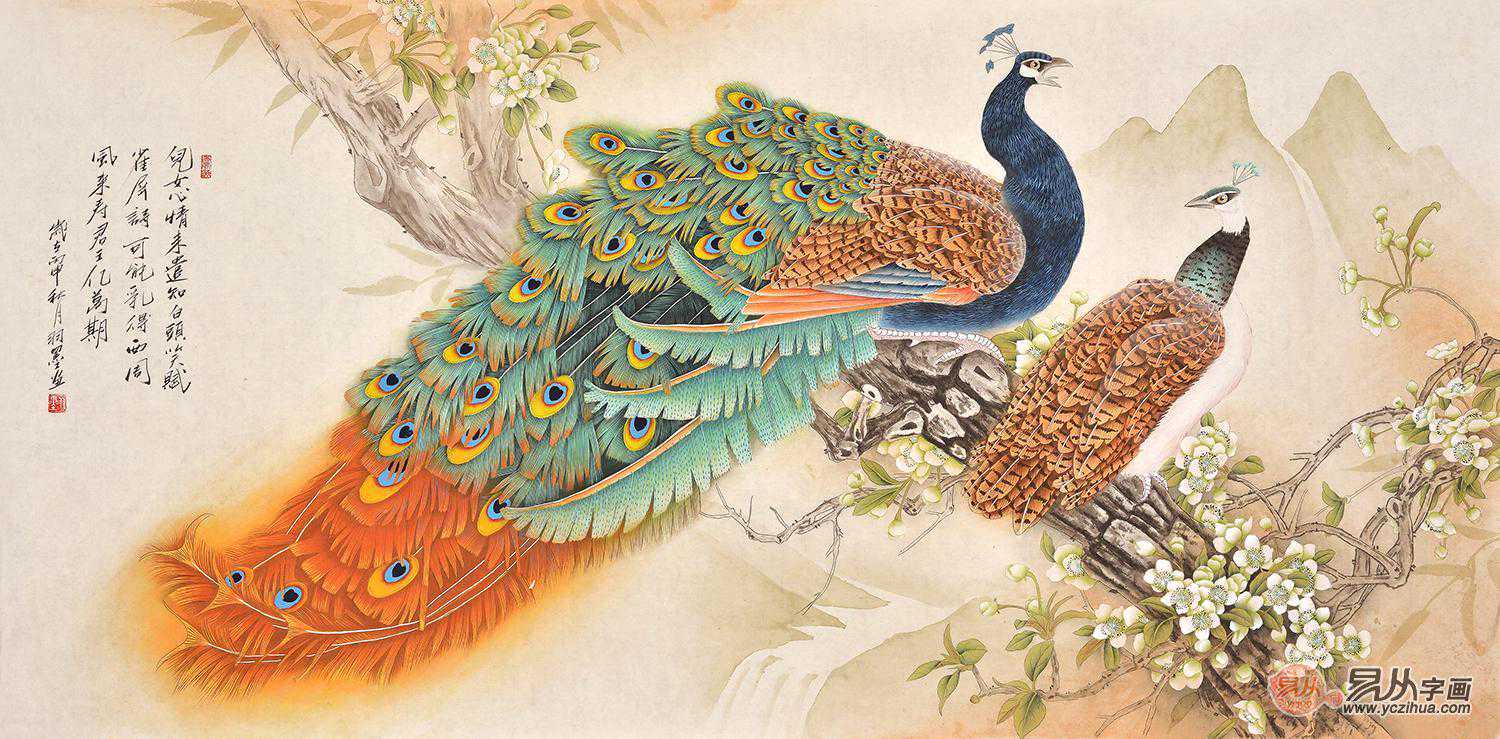 结婚送礼首选羽墨花鸟画作品孔雀图《儿女心情未追知》