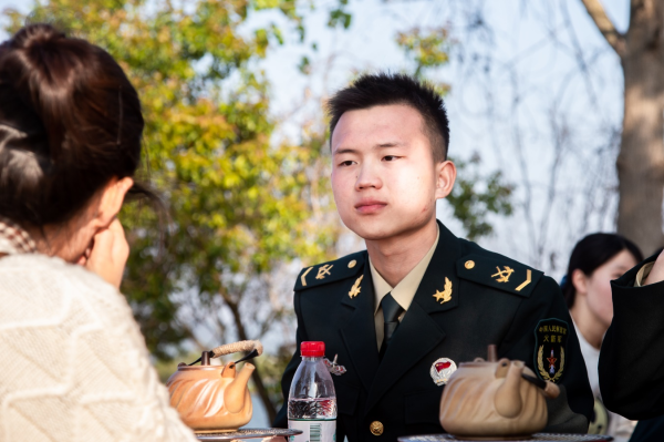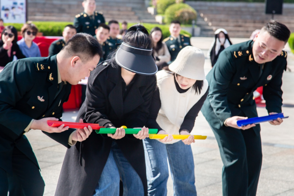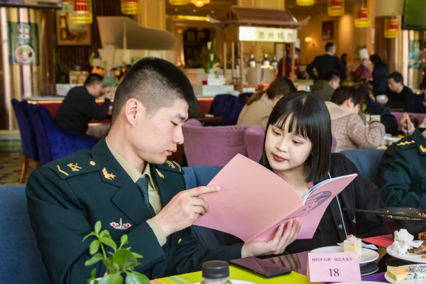 集体婚礼结束后,由团市委组织的20余名地方女青年和部队未婚官兵开展“青春·遇见·团缘”军地青年交友活动,通过共进午餐、互动游戏、围炉煮茶等活动,大家进一步加深了了解,现场气氛热烈,洋溢着青春欢快的气息。