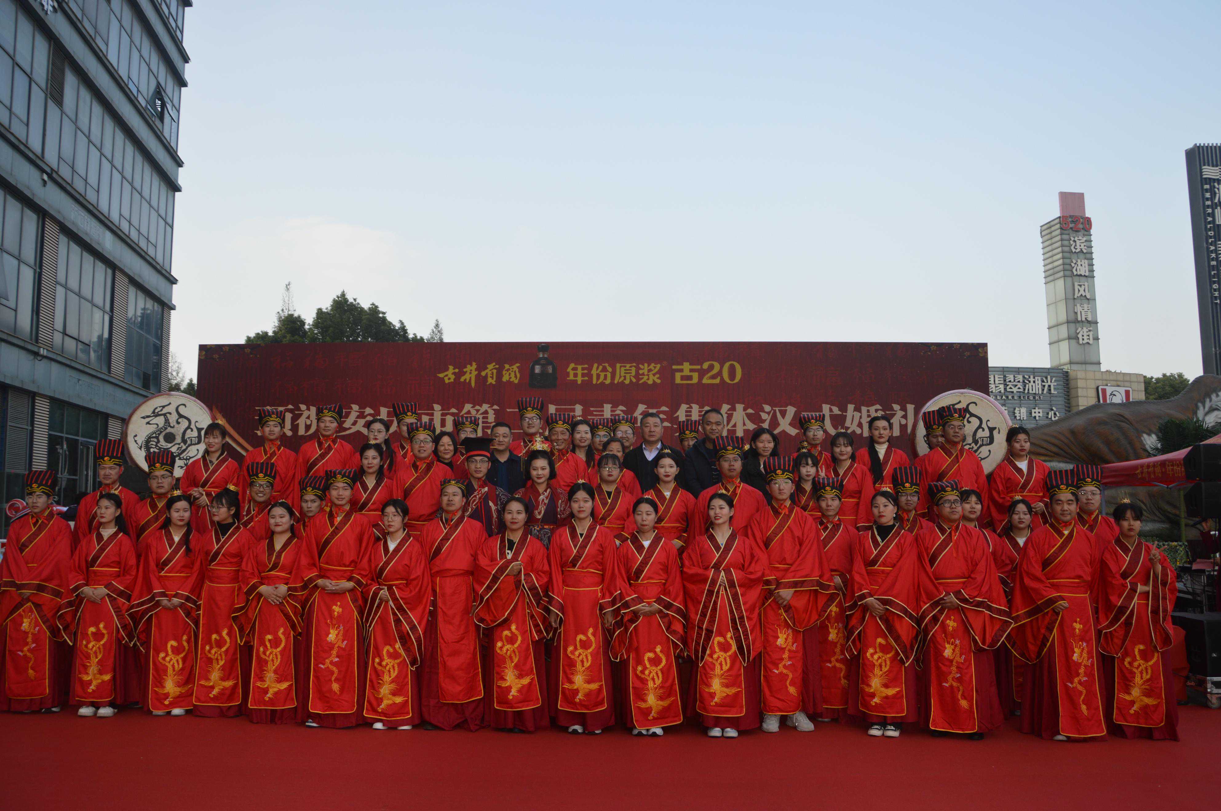 着我汉家衣,嫁我华夏郎。据了解,本次活动共有28对新人参加了集体汉式婚礼,活动当天,28对新人身着华丽的汉服,现场播放着古典音乐,仿佛穿越了时空,为古城安庆增添了古风、古色、古香、汉韵,更彰显了中华传统文化的魅力。
