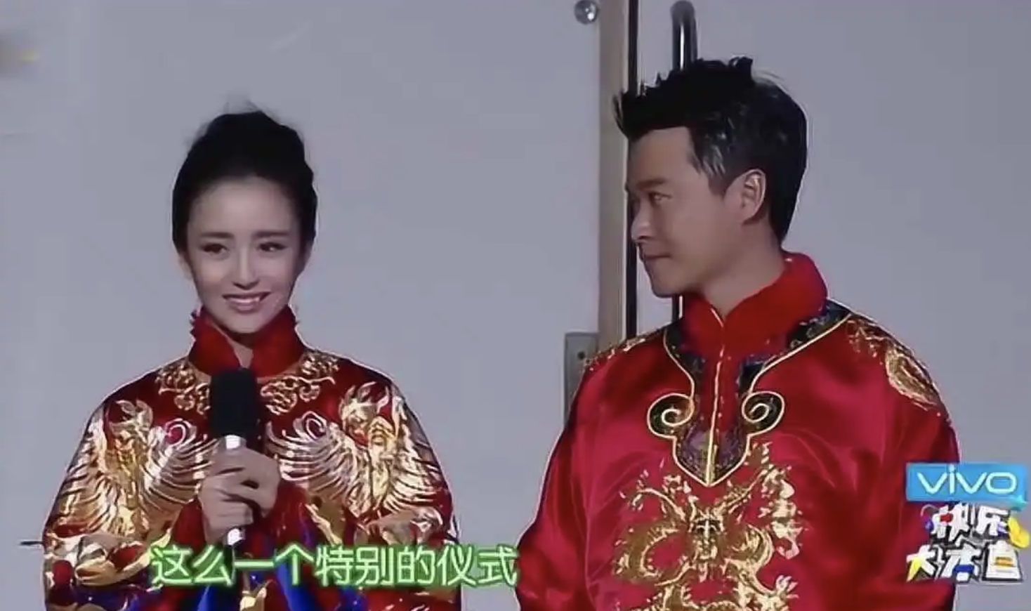除了这场大溪地婚礼,陈思诚和佟丽娅还在《快乐大本营》的舞台上举办了一场中式婚礼。