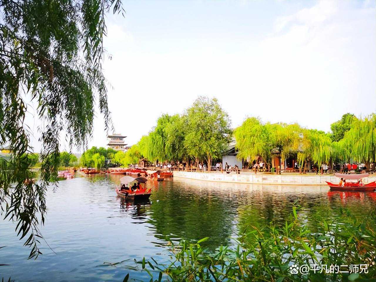 中国唐城影视基地与其他影视城不同,除了大唐盛世的恢宏建筑外,它有相当大的一部分是山水园林景观,园区绿化得非常到位,俨然到了江南水乡,亦或一个风景如画的江南公园,所以,唐城是轻奢旅游,游览起来非常轻松愉快!