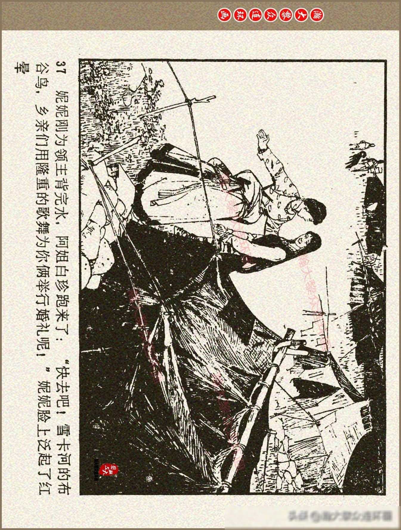 【情节描绘:西藏农奴的婚礼之梦】在连环画《妮妮的婚礼》中,蒋宜勋用精湛的画技将西藏农奴们的婚礼场景栩栩如生地呈现在读者面前。画中的妮妮是一个普通的农奴女孩,她梦想着自己的婚礼,渴望着自由与幸福。然而,这样的梦想在当时的社会背景下显得如此遥不可及,充满了挑战与困难。