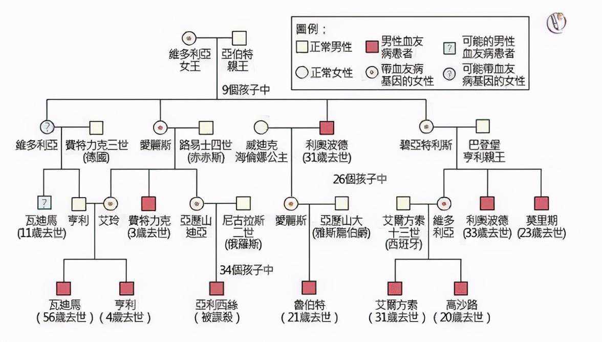 在法国,乃至整个欧洲历史上,贵族之间近亲通婚并不罕见,甚至还非常常见,著名的维多利亚女王就嫁给了自己的表弟阿尔伯特亲王,然而维多利亚女王是血友病携带者,她的子女们也将血友病基因传播到各个王室,并通过近亲结婚,导致了多个王室之间不断出现血友病患者,以至于血友病又被称为皇室血友病。