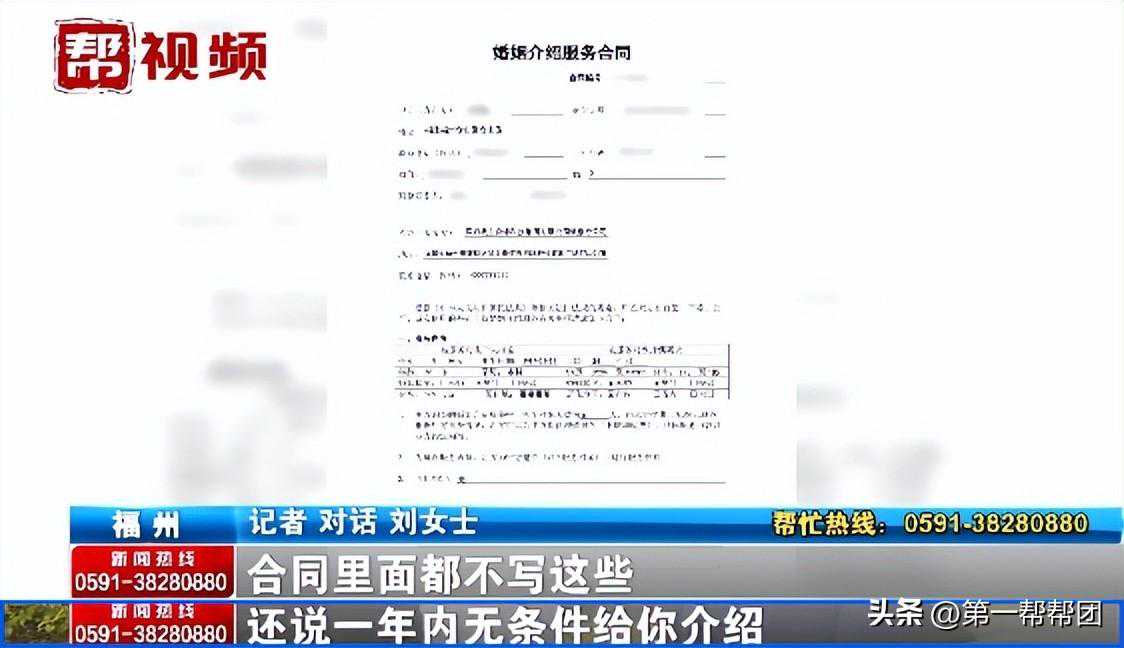 在往期的节目中,《帮帮团》也曾数次报道了一些当事人跟我主良缘婚介公司的纠纷。这些纠纷在记者的帮忙后,双方协商一致,婚介公司退回了部分款项。但我们注意到,婚介公司关于给当事人提供的服务价格,同样没有详细注明;签订的合同中,一些口头约定也没有得到落实。