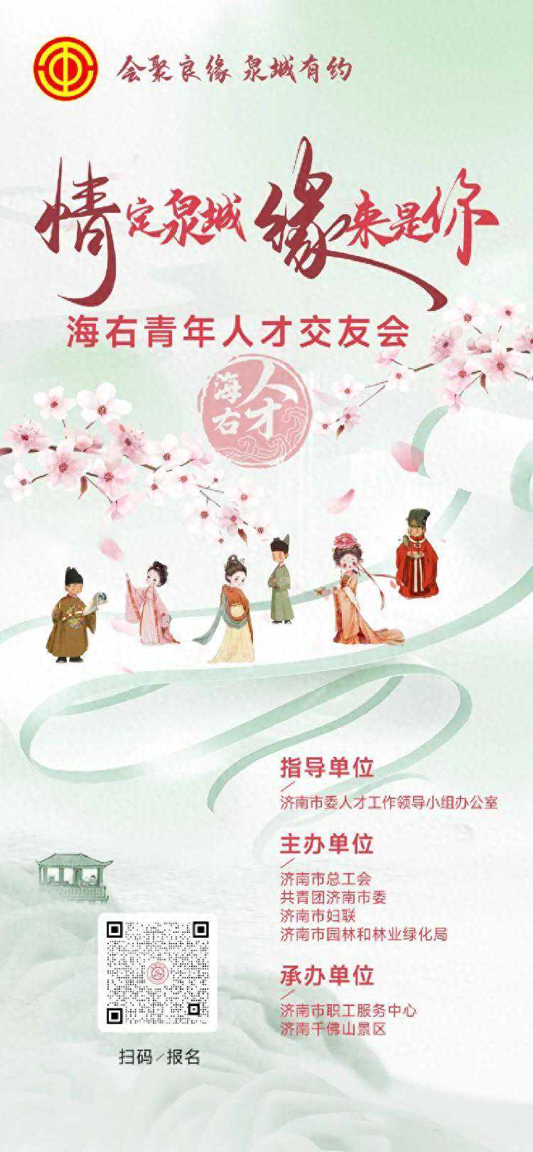 百花生日是良辰,未到花朝一半春。“花朝节”是纪念百花的生日,又称“花神节”,在中国古代是一个十分重要的民间传统节日。“花朝节”期间在千佛山风景区有一场热辣滚烫的相亲会,这里主打“古风新韵、文化穿越”,让广大单身青年人才着古装、执团扇,展才艺,既能登舞台又能组团打卡,单身的你快快报名参加吧!
