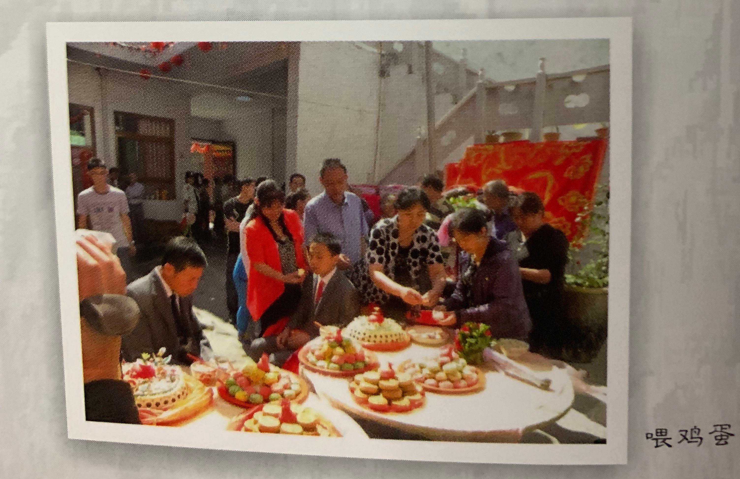 城一带姆礼当天,要请儿女双全的婶子子们包富贵馄饨,以使新即亲前吃。姑姑都是重要亲成,除了上重礼外,还浔“抬食罗”。头一个盆子里放的是特制的“礼”,后面的分別装的是礼金,爸妈妈逐要亲手给儿予喂煮熟的鸡衣,棉被,被面,花炮。新即临迎亲前,和引女的人同席吃馄饨