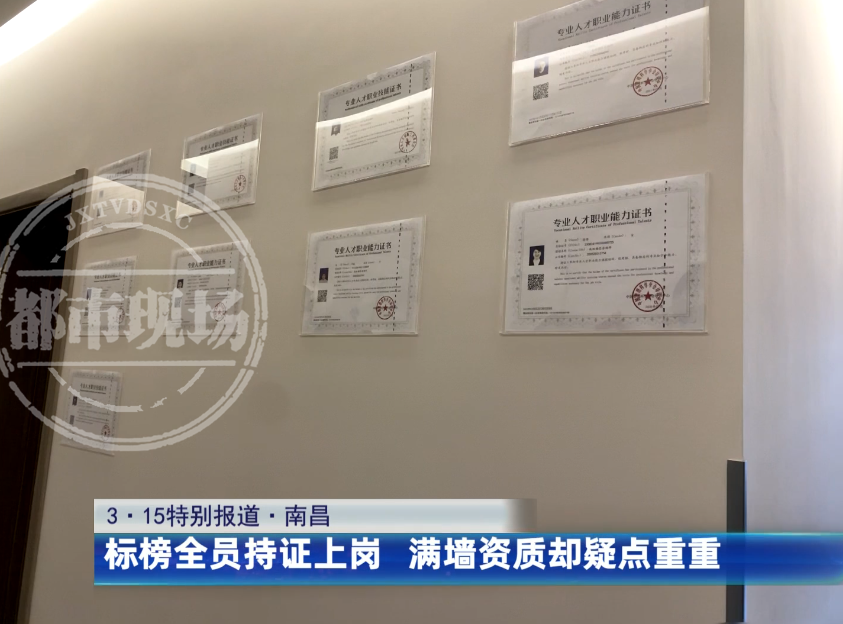 仅仅几天之后,十几张证书便被贴在过道的墙面显眼位置。每位客户到店,“红娘们”都会特意介绍,他们是国家认证的情感老师。不过,记者仔细查看证件上的名字,发现只有店长和服务部经理两人是门店的工作人员。而且这些证书的真伪也存在问题,证书上写着专业人才储备工作委员会颁发的“专业人才职业技能证书”,记者通过查询,仅找到一个叫“全国专业人才储备工作委员会”的组织,而2021年5月19日,该组织被北京市民政部门列为非法社会组织。
