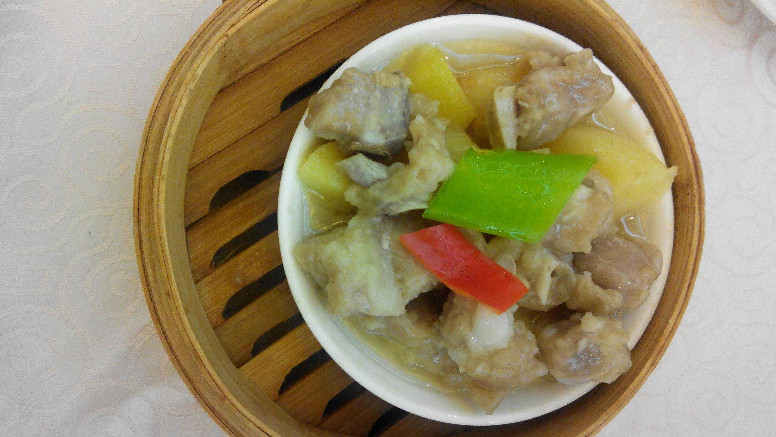小块排骨大多是肋排,也不肥,做得还算入味。排骨下面是芋头还是土豆记不清了,与汤汁亲密接触后,感觉更好吃。