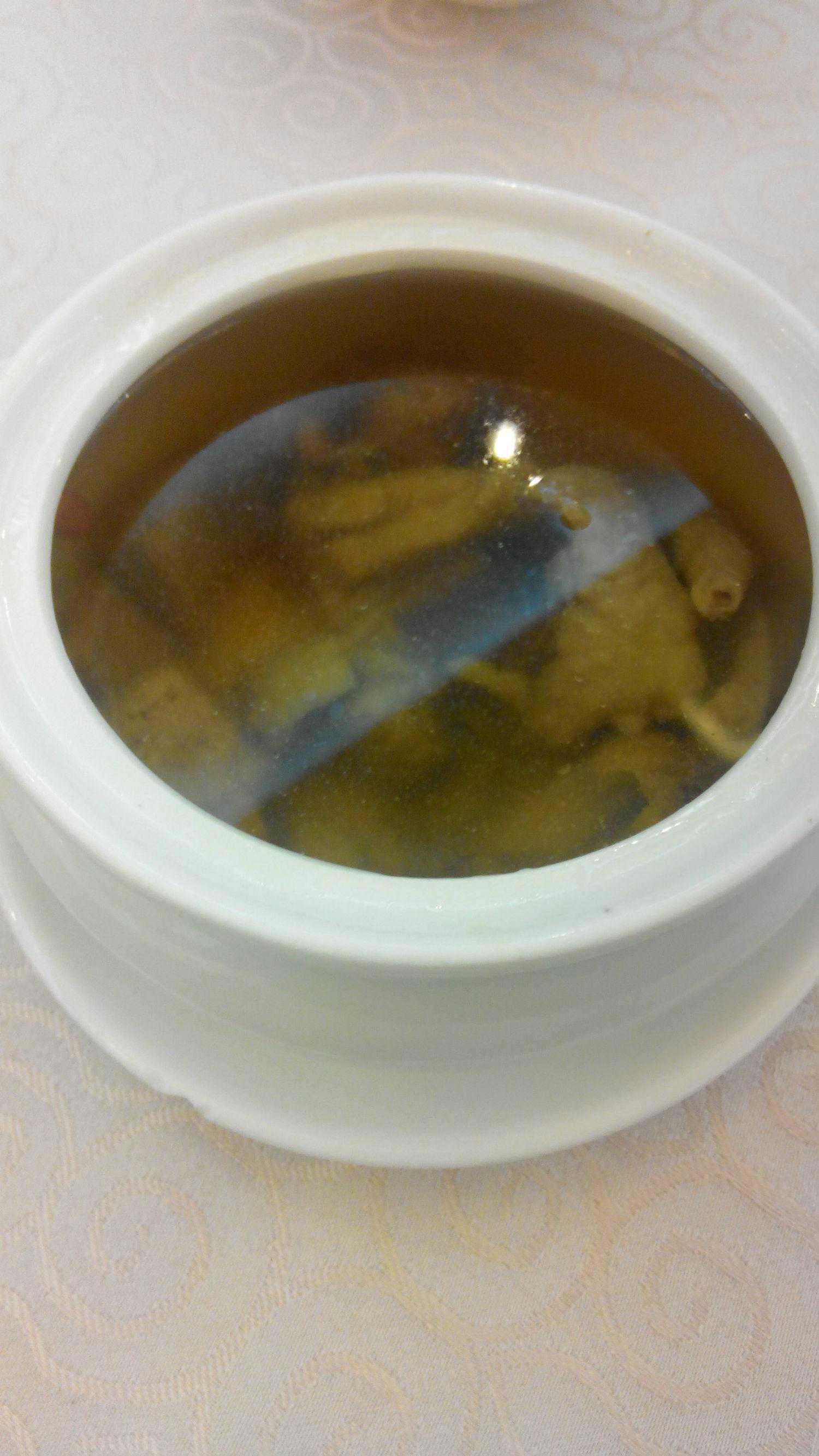 我忘了汤里到底有几小片松茸,只记得有松茸与中药材混合后的特殊味道。带骨的鸡肉倒是不少,吃肉喝汤也罢了。其实我们带了好茶请服务员泡上而且一直喝着,这款汤本可以不点,点了也就是让这顿饭感觉更完整一些。