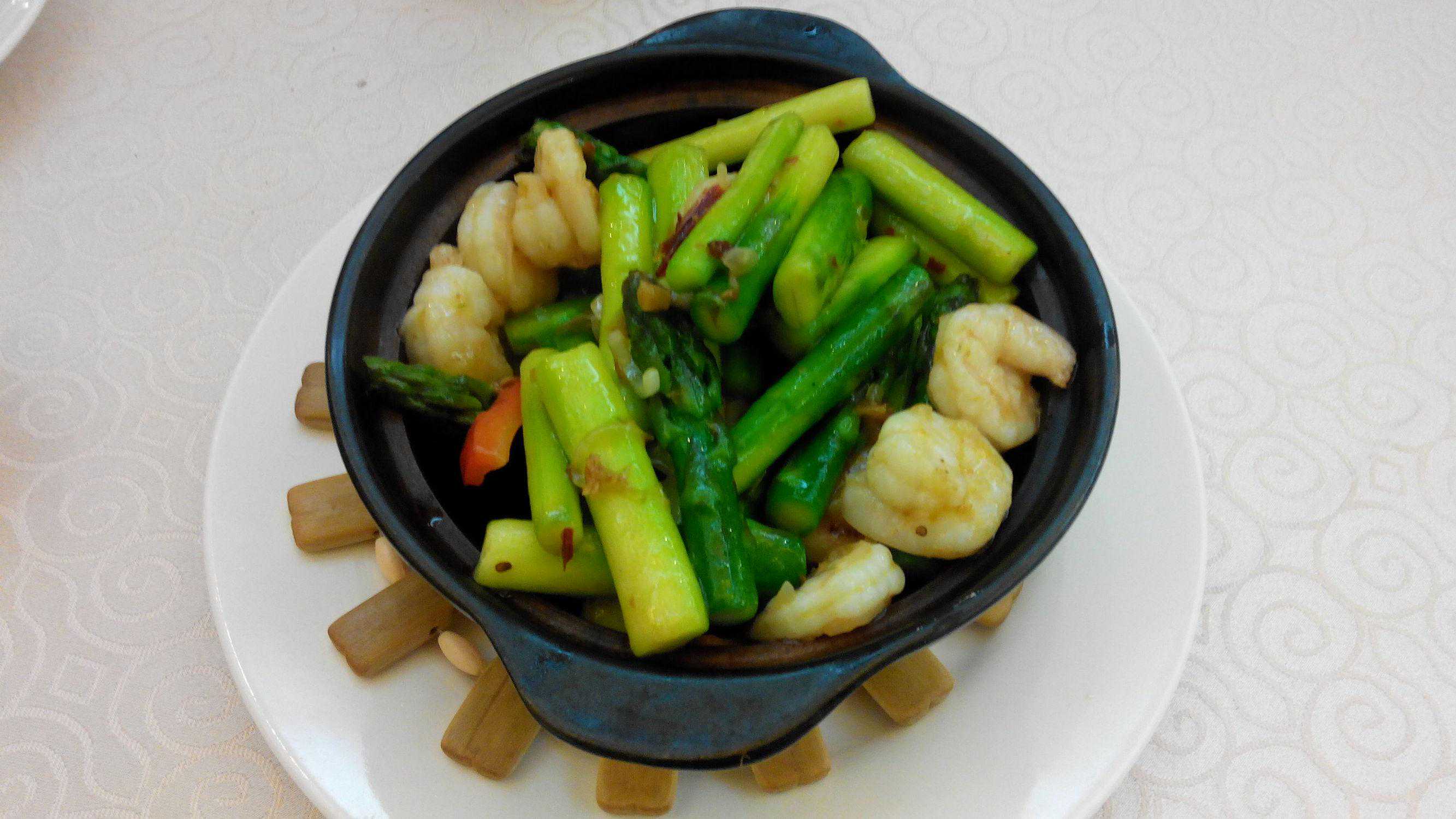 名字挺特别,我特意查了一下,“砂窝鱼头”属于粤菜。那么这道砂窝鲜芦笋除了食材不同,做法应与其差不多吧。芦笋确实鲜脆,虾仁看着也实在,配了少许青椒,有荤有素、鲜香爽口。只是分量不大,价位也偏贵了。