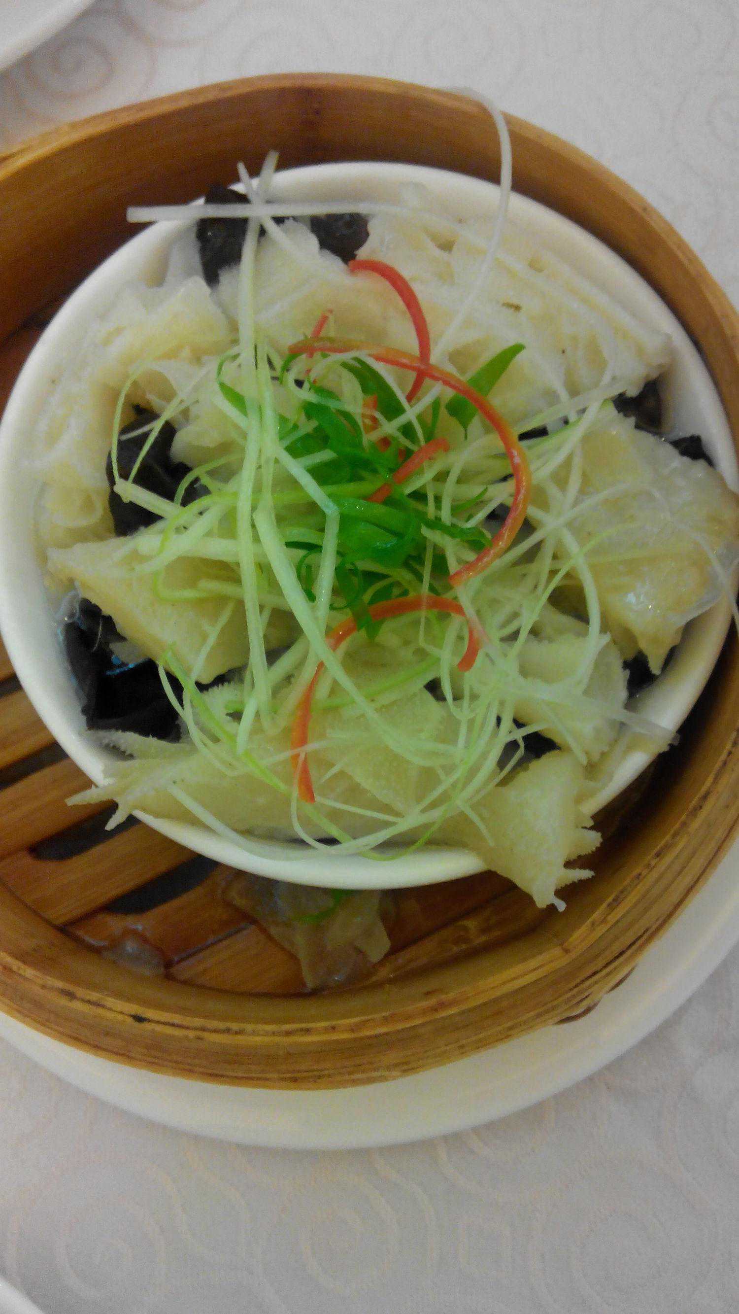 作为广式茶点,主料是牛百叶与木耳,加上葱姜丝和红椒丝,也有四种颜色,显得小而精致。虽然每人只能夹上几筷子,不过味道鲜香,确实不错。