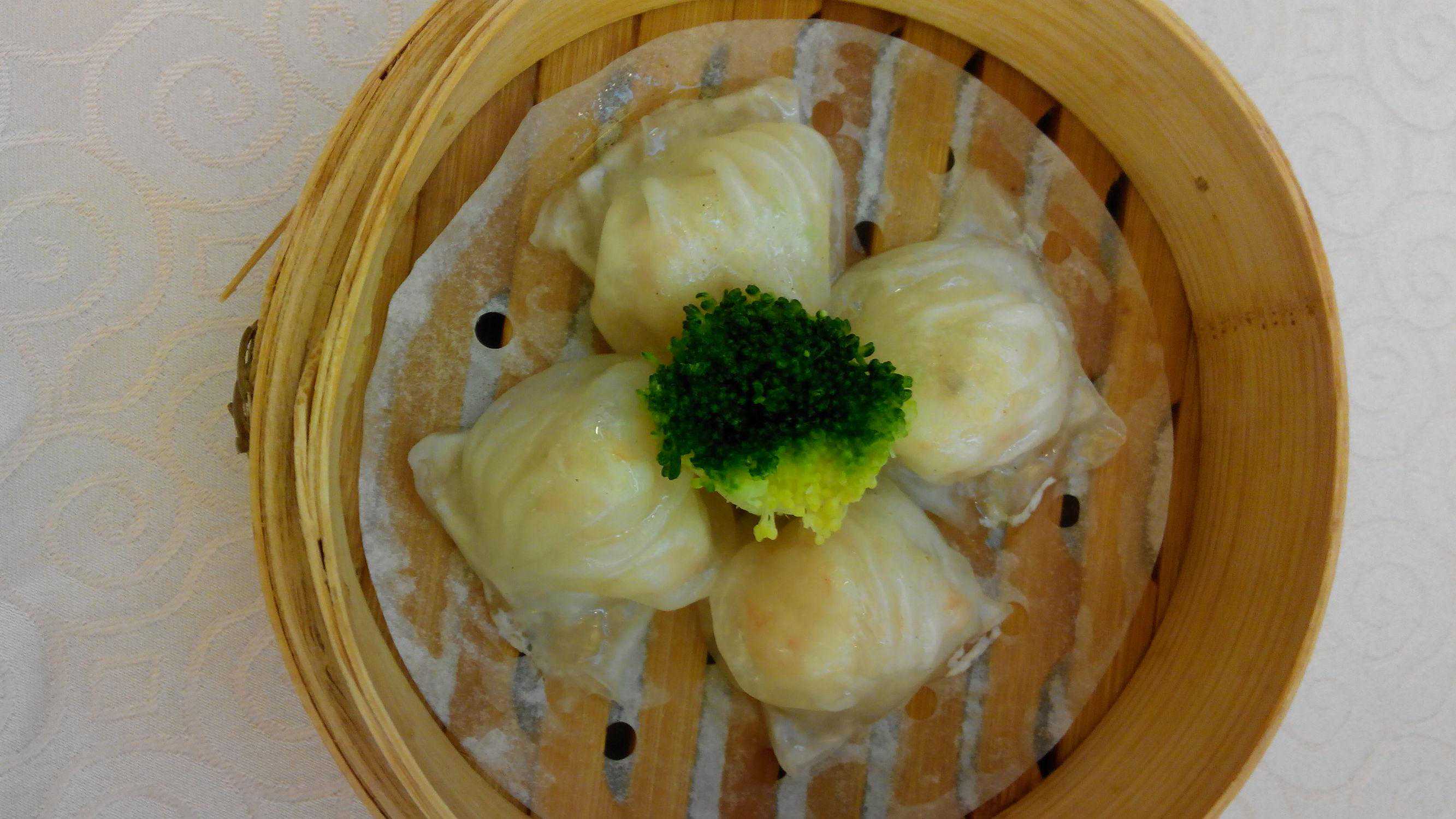 这是服务员推荐的该店粤式小吃的招牌,薄皮大馅,晶莹剔透,好像里面就一个整块虾仁。味道没得说,不过一个6块2,身价与狗不理包子有一拼。这种迷你小吃要当作主食,我自己就能吃三四份。