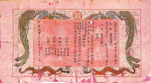 民国时期的婚书出现“龙凤呈祥”等元素。