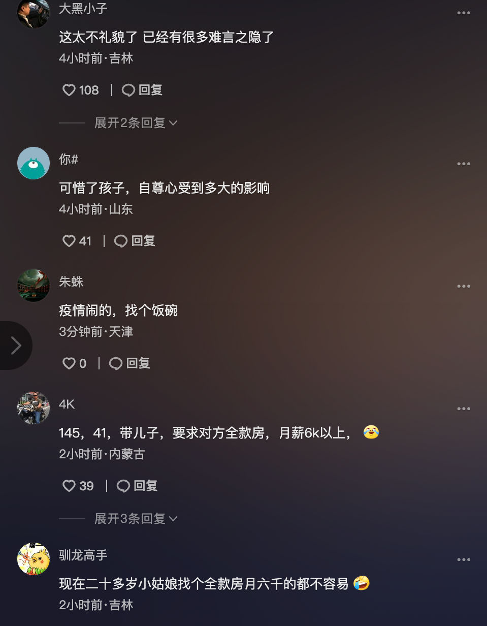 吉林一女子带娃征婚,要求男方月薪6000以上,大妈:过门就当爹