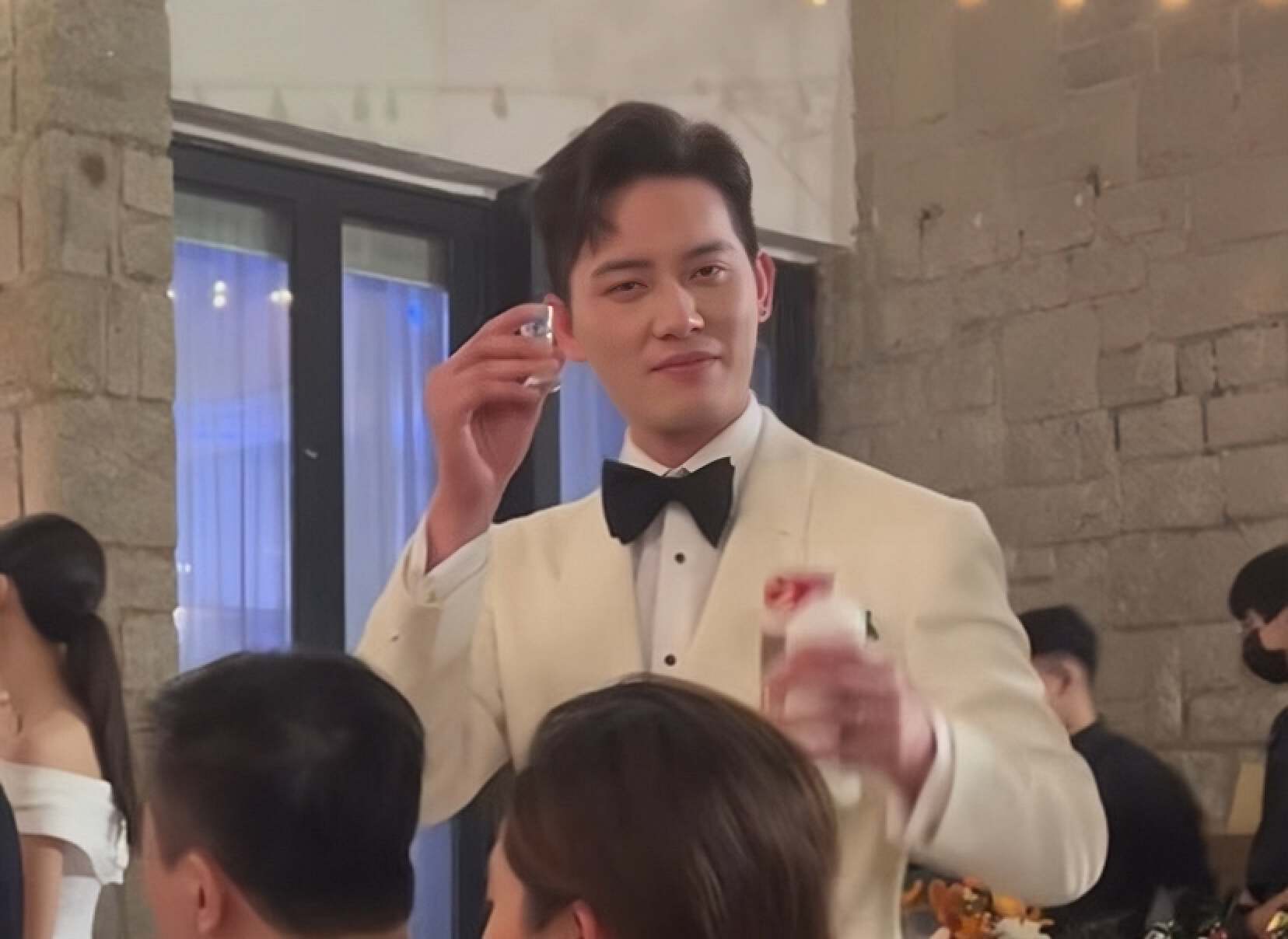 在婚礼上,盛劲为穿着定制的西服套装、头发打理得一丝不苟,对麦明诗也是照顾有加。加上身高出众,站在台上,真的特别帅气。