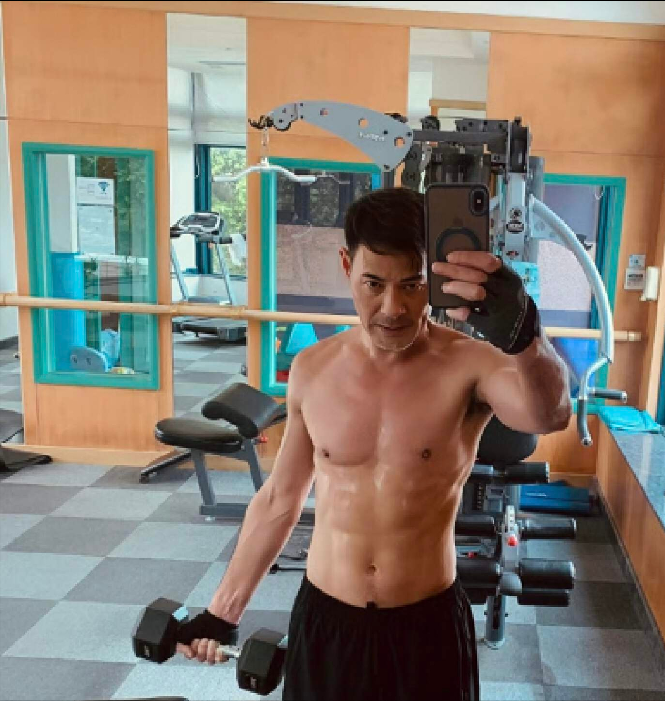 黄智贤在社交媒体上,分享了一张健身照片。照片中,他的胸肌、朱古力色的腹肌都特别明显,网友都在感慨:完全不敢相信这是已经56岁中年男人的身材。