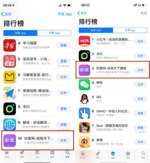 春节又逢情人节,在众所周知的外因和内因的双向夹击之下,单身人士"找对象"的需求被置顶。同随"置顶"的,还有主打婚恋交友的珍爱网——AppStore官方排行榜显示,珍爱网在此期间一举挺进前三,成为社交名类里的新热门。