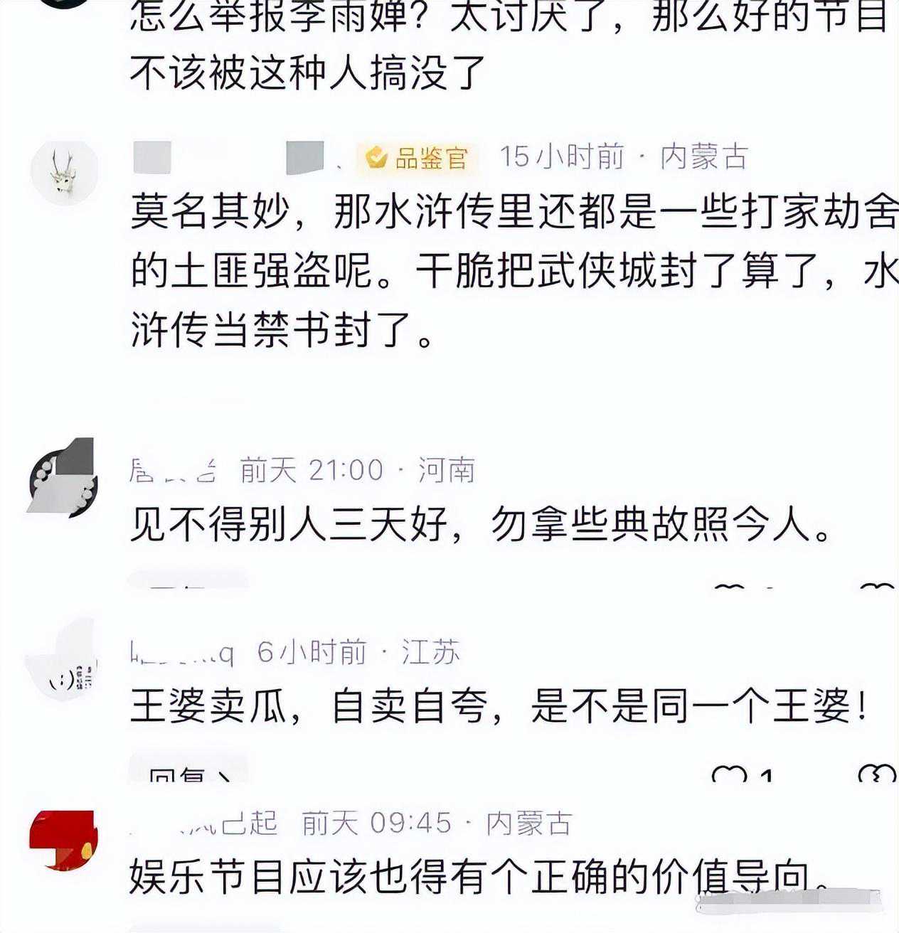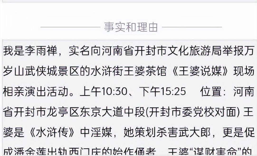 其实李雨禅举报开封的《王婆说媒》节目,因为赵梅老师扮演的王婆角色和节目内容,最近成了热门话题。担心节目里的王婆和《水浒传》里的王婆混为一谈,可能会让人对故事有误解。加上节目火了之后,这些担忧在网上越炒越热,有点让人担心会不会带坏风气。