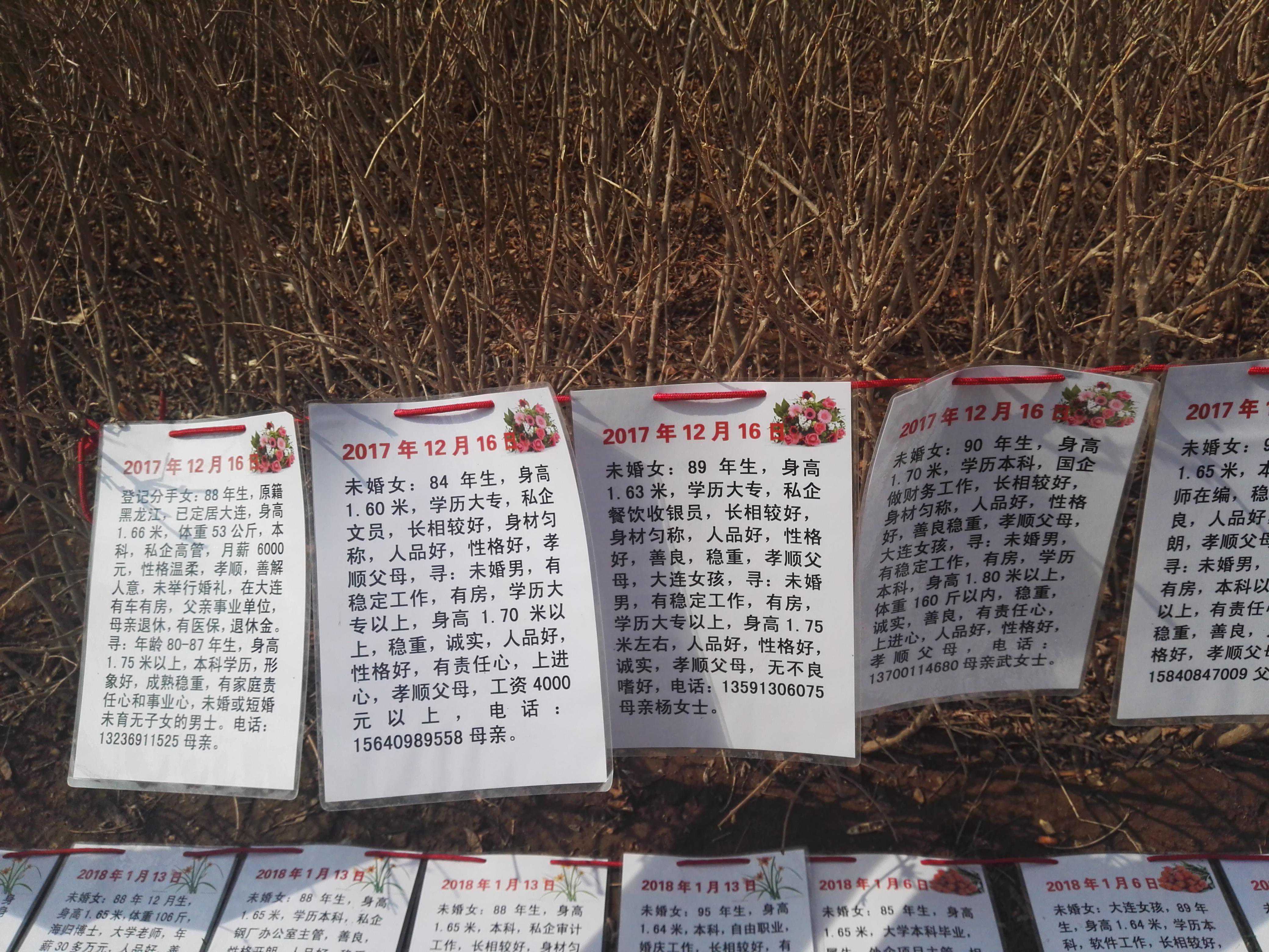 一来二去来询问了解的人越来越多,后期通过这种方式也成全了很多年轻人,效果很好。劳动公园有个能给儿女征婚,并且效果很好的消息也一点点传了出来,导致愈来愈多的父母来到这里,从而形成了少则几百人,多到一两千人的规模,后来也有一些公益的婚介机构的加入,再加上园林局和公园管理处的支持,形成了这个大连父母代儿女相亲的大集。​