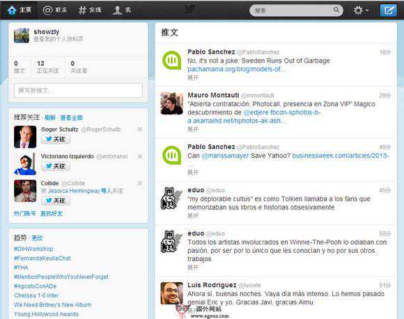 8:Twitter,是一个广受欢迎的社交网络及微博客服务的网站,允许用户将自己的最新动态和想法以手机短信的形式发布,可绑定IM即时通讯软件。所有的Twitter消息都被限制在140个字符之内。Twitter上有很多名人,例如美国总统奥巴马、李开复等,由于Twitter是消息传播最快速和便捷的通道,它的影响力在2008年美国总统选举、伊朗绿色革命、丹佛飞机脱离跑道事件等都能体现出来。