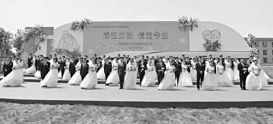 典礼结束,该公司为新人和观礼亲属举办了新婚宴会。值得一提的是,宴会结束后,新人将分批前往太原车辆段动车所、太原南站等地,拍摄铁路主题婚纱照。“不是任何人都能跟火车头拍婚纱照的,对于我们铁路系统的职工来说,能和火车及铁路主题元素拍婚纱照,可以算是最浪漫的事吧。”黄智说,参加集体婚礼的每个人,心里都有一个愿望,那就是留住美好记忆,记录美好时刻,让这些成为永不褪色的精彩回忆。而这,也是50对新人的共同心愿。