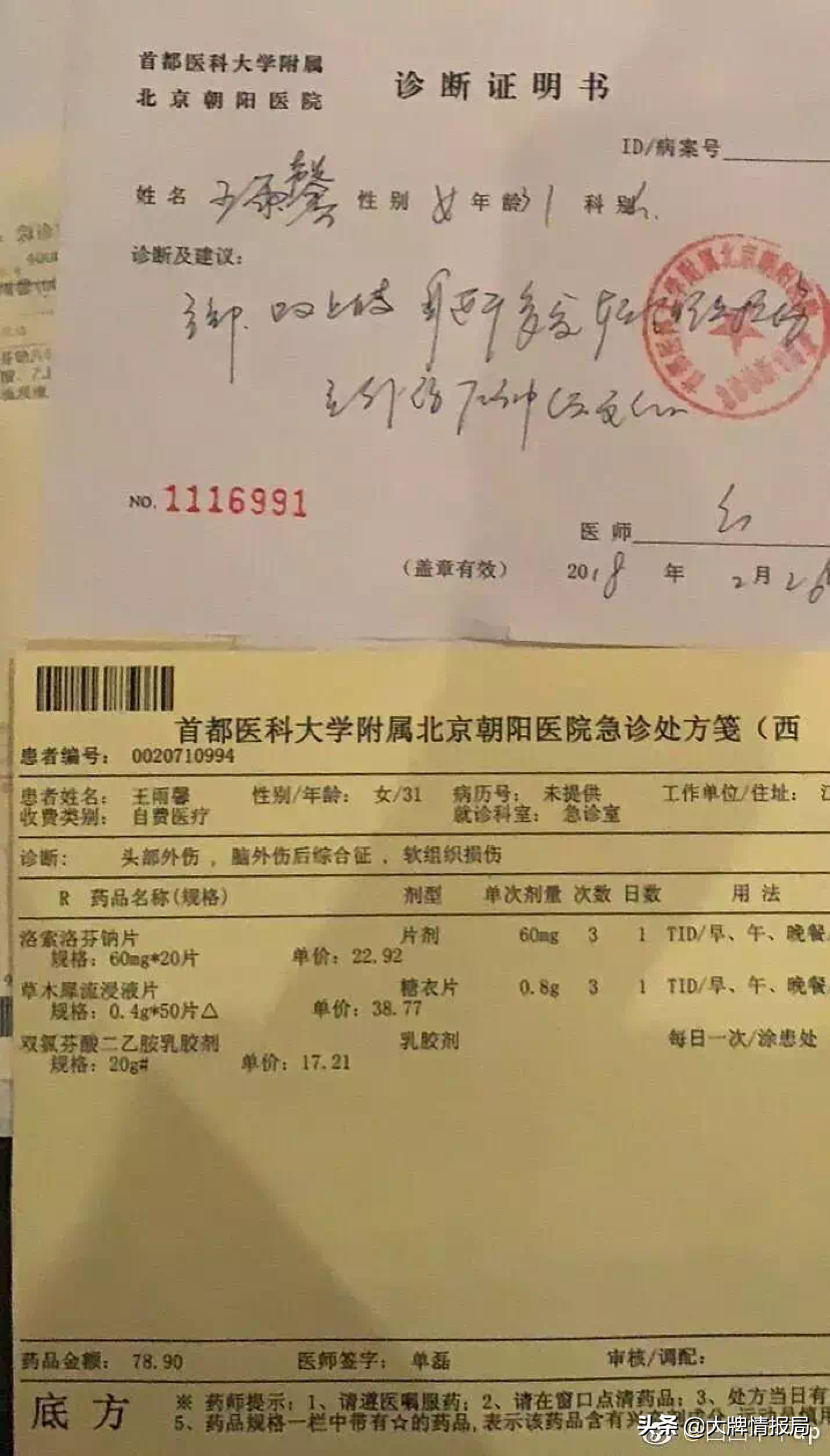 3.王雨馨诊断说明/脸部疑似受伤图(反正也是有疑点算不得实锤)。