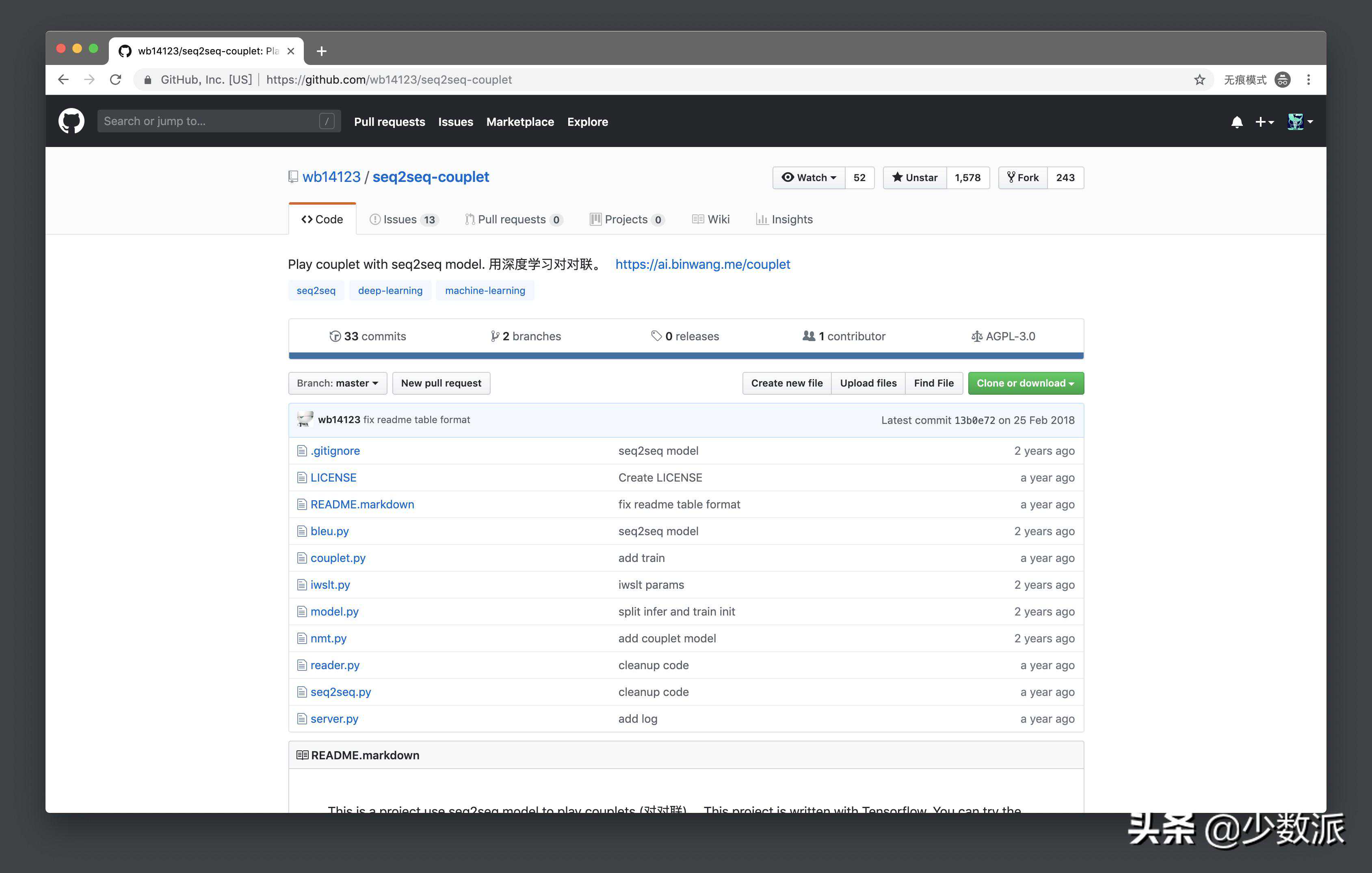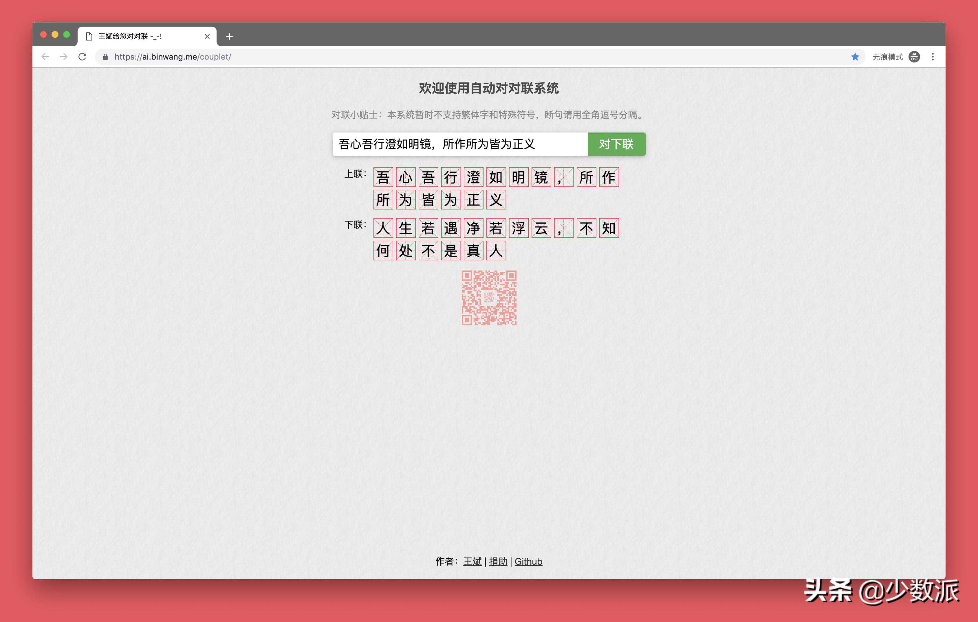 本节标题有些不通顺?如果我告诉你这是AI自动生成的呢。seq2seq-couplet利用seq2seq模型深度学习了上百万份对联数据,成功地抢了古代秀才们的饭碗儿。当然,面对比较刁钻的句子,自动生成的下联还是会有些生硬,博诸君一笑还是可以的。