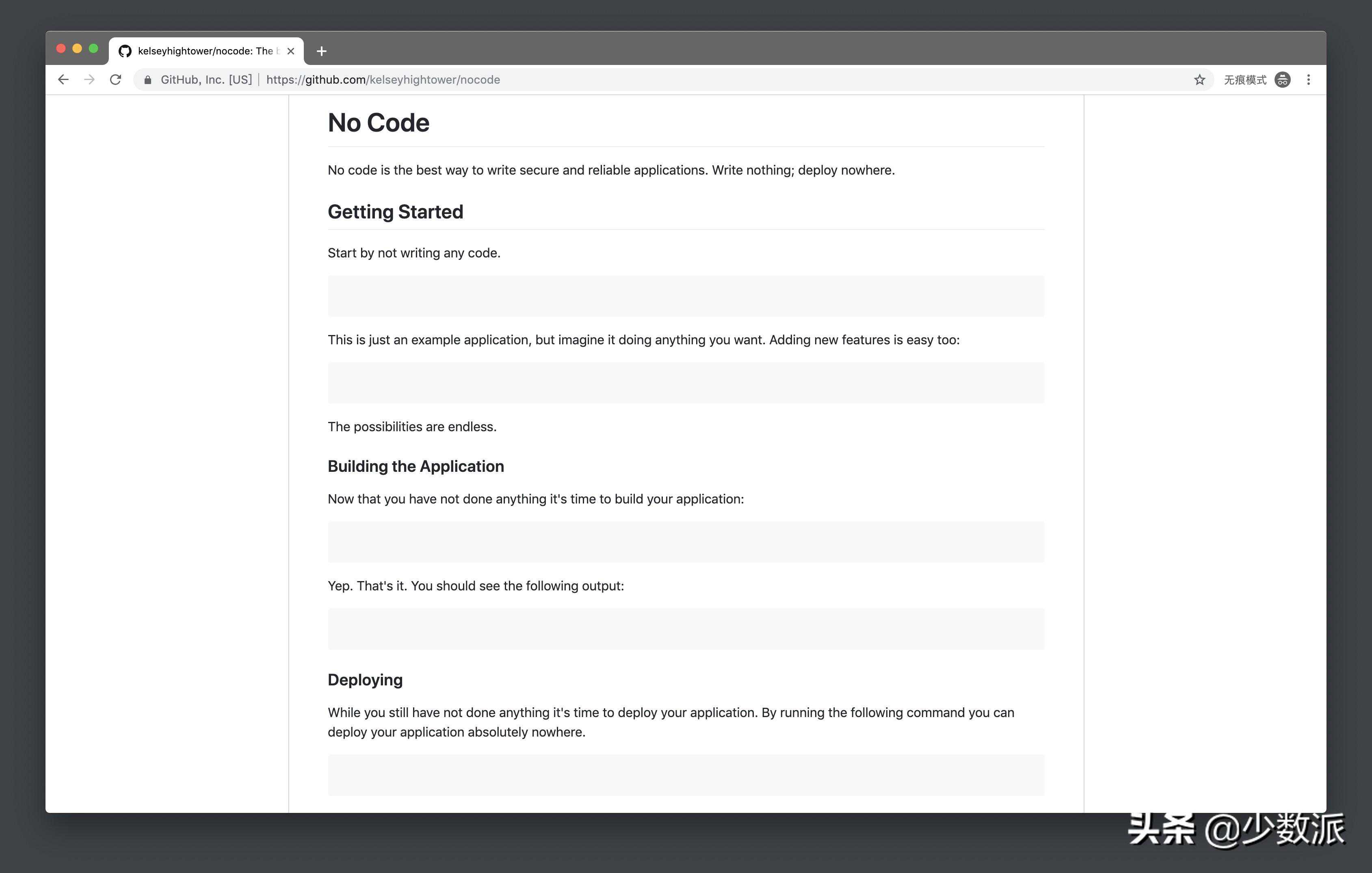 常言道:多做多错、少做少错、不做不错。要想代码零bug,最好的方法就是不写代码了。比如NoCode这个项目,就凭借简洁干练、高效优雅的语法逻辑收获了近2.8万star,值得所有码农学习。(Boss:这就是你上班划水的理由?