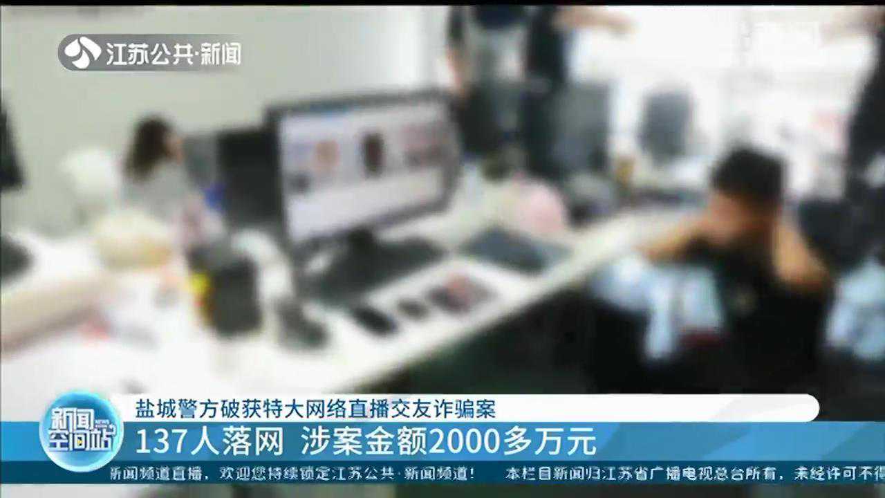 今年6月11号,江苏盐城警方在吉林、山东、湖北、湖南等地同步收网,成功摧毁一个以“充值刷礼物帮助完成PK任务”为由实施诈骗的特大网络直播交友诈骗团伙。打掉1个直播平台8个下级代理公会,现场抓获犯罪嫌疑人137名。