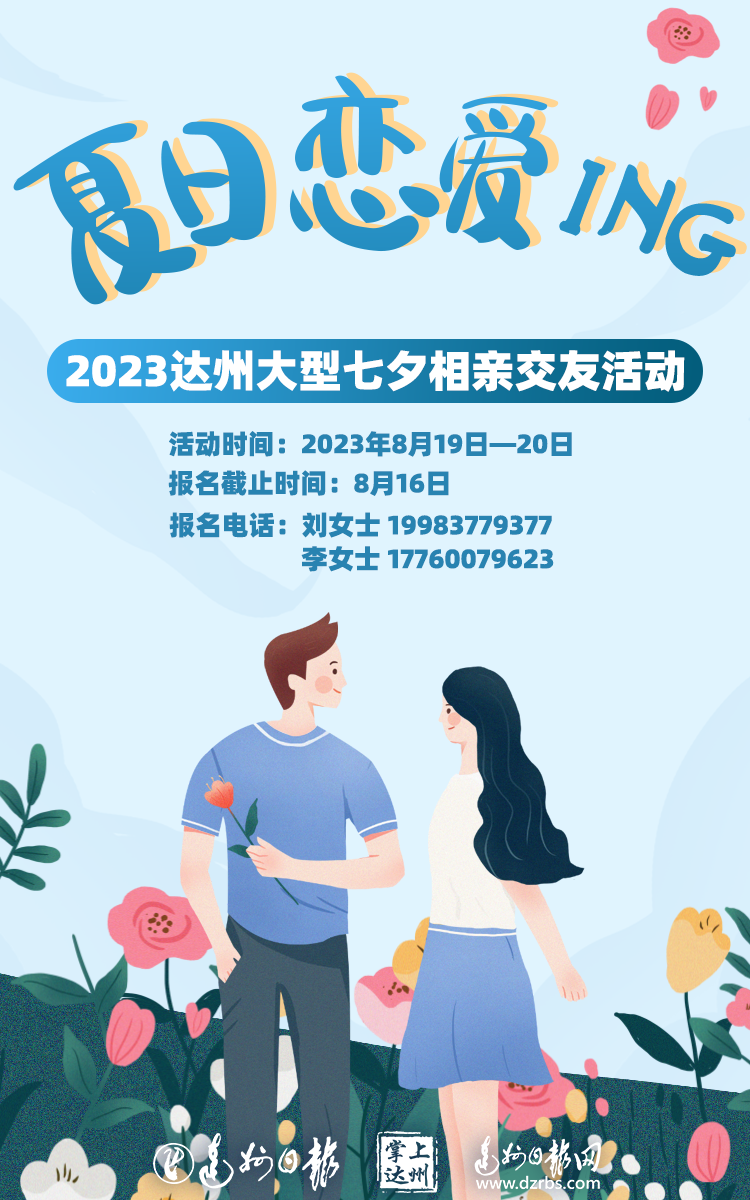 社已连续15年成功举办七夕相亲交友活动,已成为助力单身朋友交友脱单的一档传统金牌活动。今年,我们将在往年的活动基础上精心打造,全新推出“夏日恋爱ING——2023达州大型七夕相亲交友活动”,集体验性、趣味性为一体,既是年轻人恋爱交友的一次契机,更是年轻人工作之余生活的一个延伸。