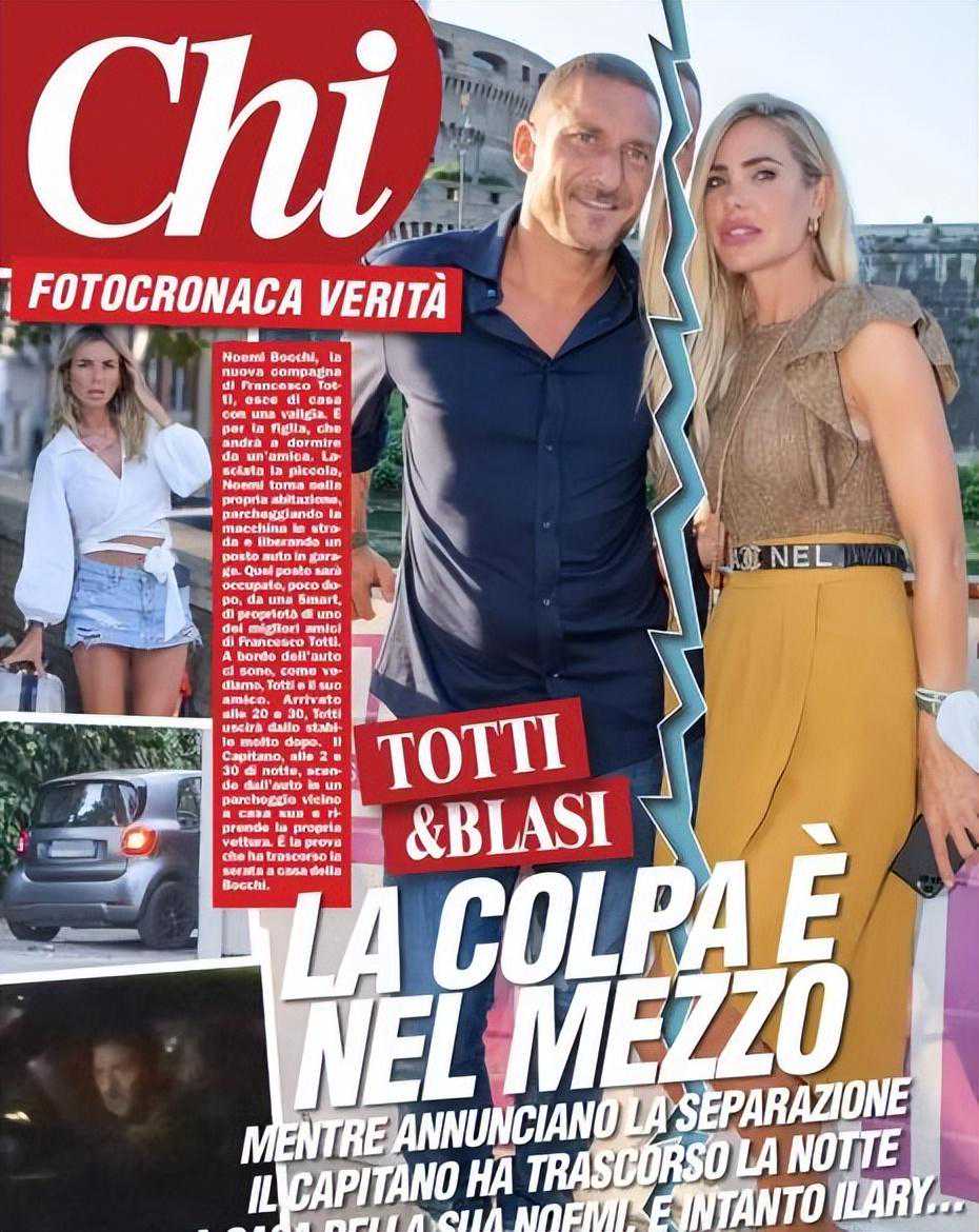 在今年2月份,托蒂就被爆出婚内出轨丑闻,勾搭上了当时还没离婚的女强人诺埃米·博奇,两人相差12岁。当时托蒂还极力否认,但《Chi》拍摄到了有力“证据”,托蒂在宣布离婚前两天的一个晚上还到诺埃米·博奇家里作客。