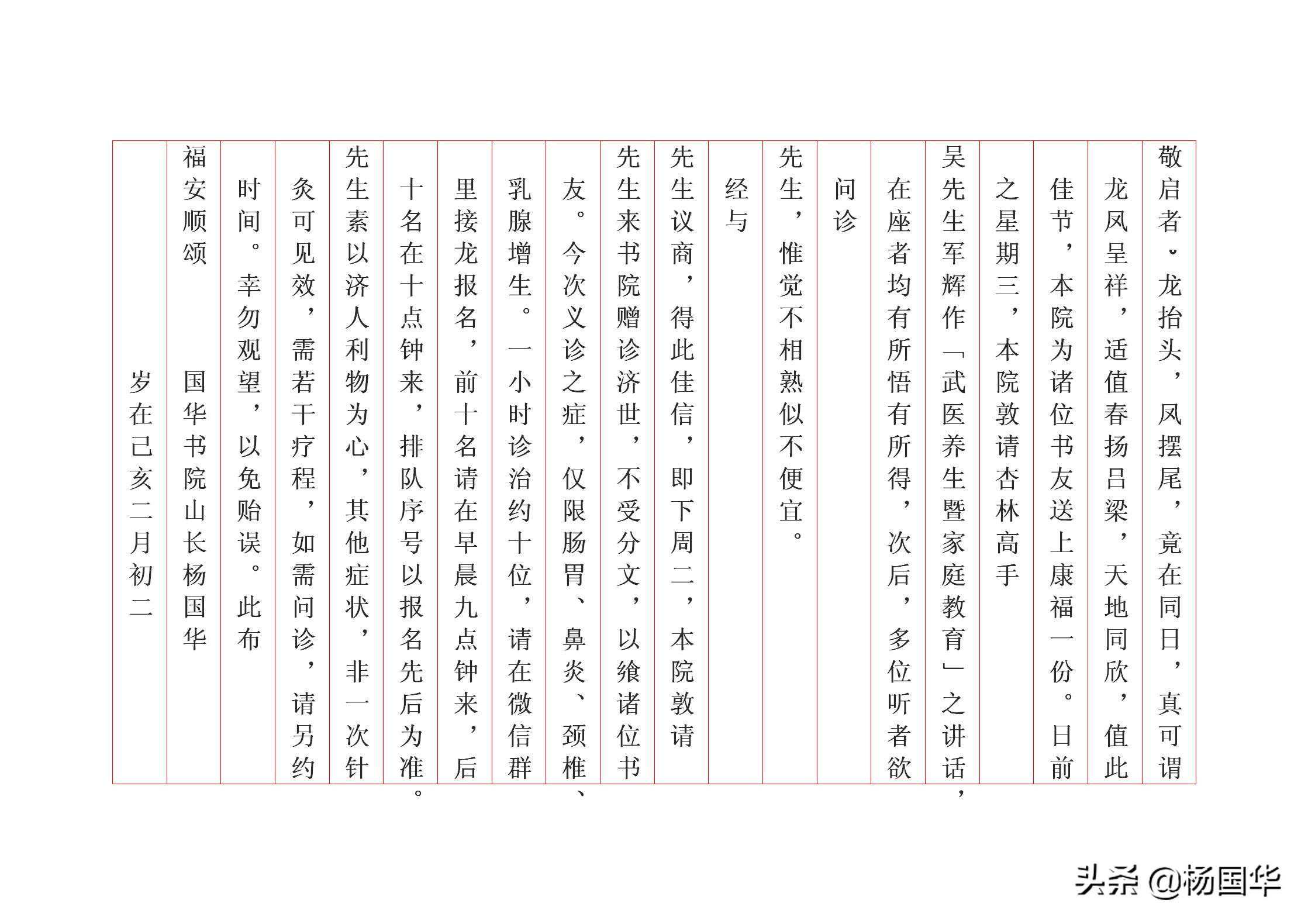 经与先生议商,得此佳信,即下周二,本院敦请先生来书院赠诊济世,不受分文,以飨诸位书友。今次义诊之症,仅限肠胃、鼻炎、颈椎、乳腺增生。