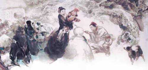 郭德福《孔子、亓官氏、孔鲤戏雪图》