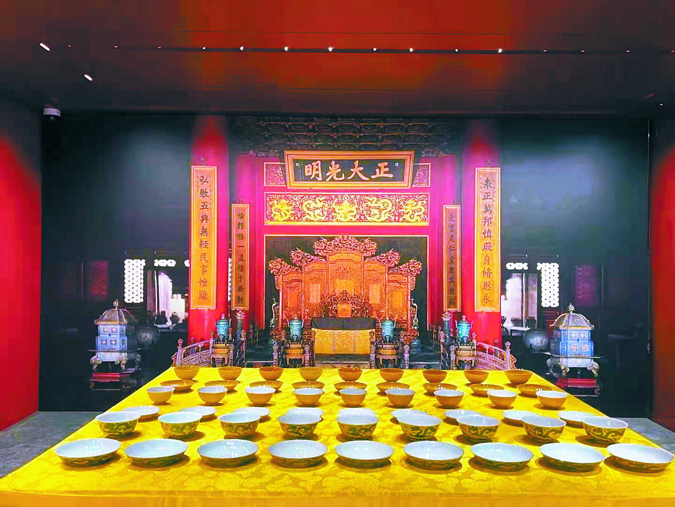 紫禁城曾是皇帝的家,宫藏盘碗瓶盆记录着皇家烟火气儿。陶瓷馆里就摆了一桌“宴席”,静待人入席。