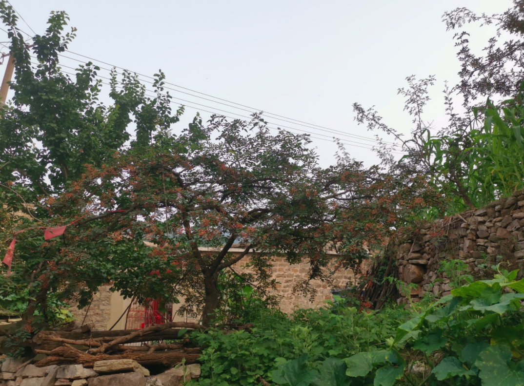 在村巷里,时不时可以闻到一股花椒的香味,这些花椒树随意地长在岩石路旁的空地上。花椒是当前村子里主要的经济作物,据村民称,这里是个“十年九旱”的地方,上个世纪70年代,通过集中钻井解决了饮水问题,但庄稼种植靠天吃饭,大概二三十年前,开始开荒大面积种植花椒。花椒是一种耐旱作物,正好适宜在这里生长。除此之外,还种一点玉米和小米。