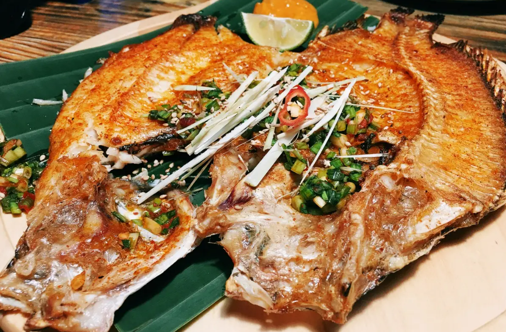这道菜可是云南当地的特色菜,选取的是新鲜的罗非鱼,加上了当地特色的二十多种香料一起腌制,之后再用猪油封面一起烤,炭火小火烤制而成。