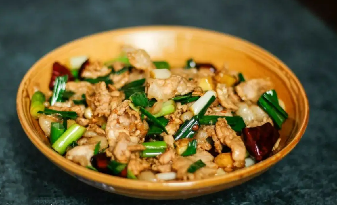 小炒肉是当地的一道家常菜,虽然只是一道家常菜,但是色香味俱全。小炒肉里面有蒜苗和当地特色的干辣椒一起爆炒,味道麻辣蒜香,颜色艳丽好看。