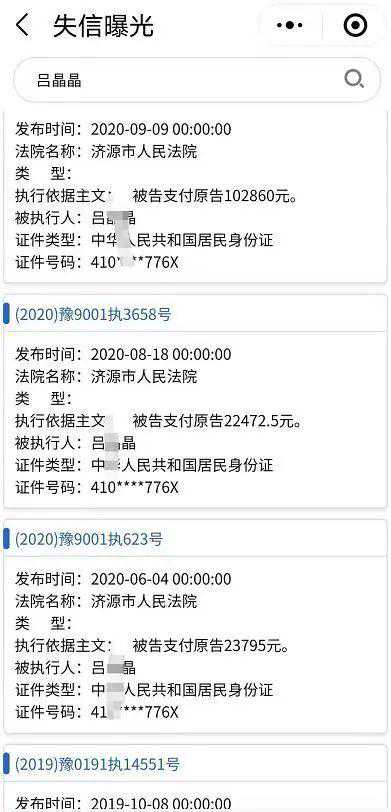 10月9日,李先生提供的判决书显示,2021年8月2日,济源市人民法院判决吕某晶于判决生效后10日内支付李某军14.95万元。