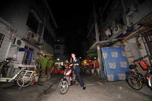 (杭州的一名25岁的房产中介,为了多等到些客户,常常加班。新华社记者韩传号2010年10月24日摄)