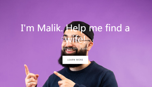打开广告中的网站,映入眼帘的便是马利克强调这次征婚是认真的。据他介绍,他的理想伴侣是20岁出头的穆斯林女子,她要非常忠于自己的信仰。马利克表示自己对任何种族持开放态度,但是他有一个非常响亮的旁遮普家庭,所以这一点另一半需要注意了。另外,马利克还说自己是家里的独子,要经常回去看望父母。