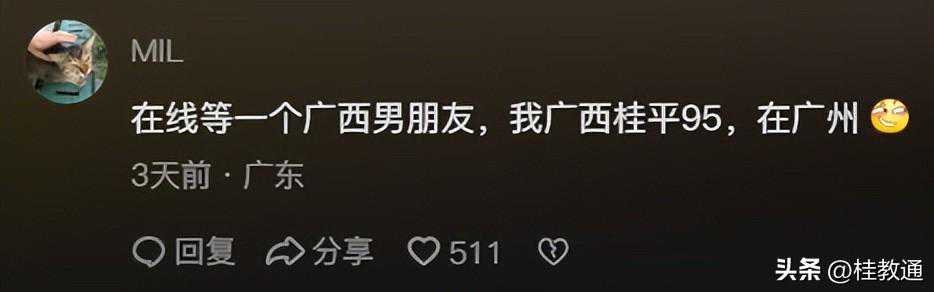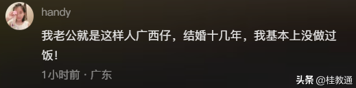 网友发视频“广西仔对家人从不含糊”,评论区变成征婚广西人现场 2025-02-05• 婚恋服务 • 作者: 小编 身为广西人,在网上看到这一则新闻的时候,心里感到很自豪。广西山好,水好,人更好!博主是一个外嫁到广西的外来媳妇,但是少进入厨房,大部分煮饭炒菜的工作都是他的老公“广西仔”完成。并配文:“我是很服了我家广西仔,对家人绝不含糊,对自己400元的羽绒服都不舍得买”。浙江网友:来一个广西的,只要是广西的就可以广西网友:对家人,我从不含糊,40一斤的榴莲,一子买两个,该吃吃该喝喝。广东网友:我老公就是这样人广西仔,结婚十几年,我基本上没做过饭!大型征婚现场广西网友:97年蹲个广西百色的 免责声明:本文章如果文章侵权,请联系我们处理,本站仅提供信息存储空间服务如因作品内容、版权和其他问题请于本站联系