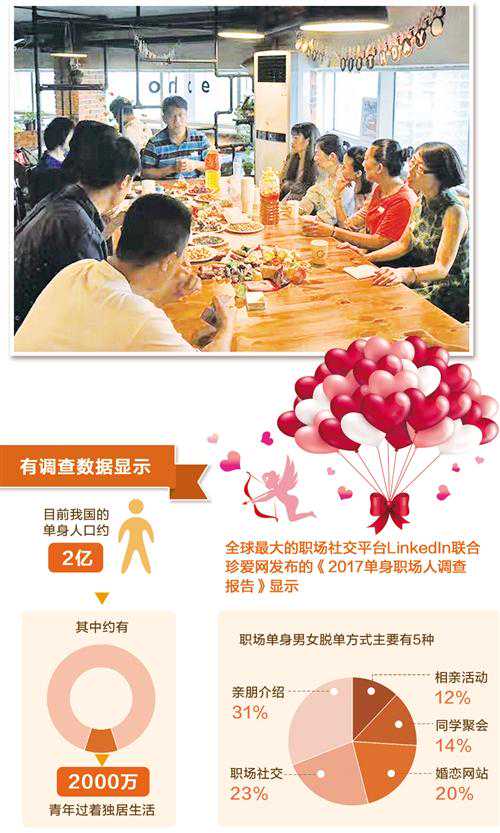 全球最大的职场社交平台LinkedIn联合珍爱网发布的《2017单身职场人调查报告》显示,职场单身男女脱单方式主要有5种:亲朋介绍占31%,比例最高,其次是职场社交占23%、婚恋网站占20%、同学聚会占14%和相亲活动占12%。智联招聘发布的《2017中国职场情感现状调查》显示,从职场白领认识异性的渠道来看,有68.73%的人群愿意接受相亲。