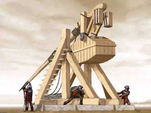 抛石机是能够利用杠杆原理抛出石头的武器,它可以把30公斤到100公斤不等的石弹抛出近300米远的距离。