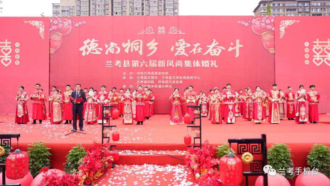 新风尚集体婚礼用行动践行了文明新风,引领了时代新风尚,倡导婚事新办、为爱减负的理念。目前,兰考县新风尚集体婚礼已连续举办六届,共计为172对新人举办了低彩礼、零彩礼的集体婚礼。